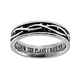 Spirit & Truth ST-WCOTR-IKNW, Stainless Steel ring with raised crown of thorns surrounded with black enamel. Black enamel scripture engraving inside of ring reads, "I Know The Plans I Have For You (Jer. 29:11)". Dome shaped comfort fit band. (Read More)